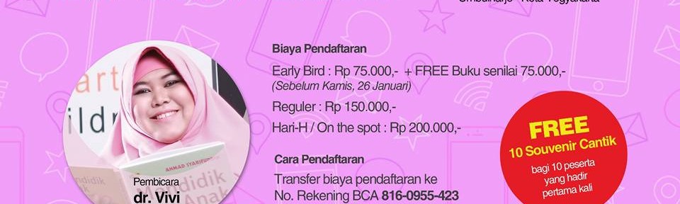 Kali ini Dr Vivi Dokter Parenting akan hadir di Kota Yogyakarta pada hari Sabtu, 28 Januari 2017 di Hotel Fave Yogya, dengan tema Melindungi Anak dari Bahaya Gadget Di era digital seperti ini para orang tua dituntut untuk selalu belajar karena perubahan sedemikian cepat. Orang tua harus paling tidak mainan yang tidak seharusnya di mainkan […]